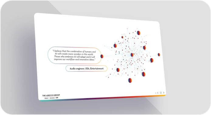 “I believe that the combination of humans and AI will create more wonders in this world. Those who embrace AI will adapt and it will improve our workflow and innovative ideas.” Audio engineer, USA, Entertainment 11 2024 | Working Through Change Page 10 Page 12Video Player is loading.Play VideoPauseUnmuteCurrent Time 0:03/Duration 2:24Loaded: 19.03%0:03Stream Type LIVESeek to live, currently behind liveLIVERemaining Time -2:21 1xPlayback RateChaptersChaptersDescriptionsdescriptions off, selectedCaptionscaptions settings, opens captions settings dialogcaptions off, selectedAudio TrackPicture-in-PictureFullscreenThis is a modal window.Beginning of dialog window. Escape will cancel and close the window.TextColorWhiteBlackRedGreenBlueYellowMagentaCyanTransparencyOpaqueSemi-TransparentBackgroundColorBlackWhiteRedGreenBlueYellowMagentaCyanTransparencyOpaqueSemi-TransparentTransparentWindowColorBlackWhiteRedGreenBlueYellowMagentaCyanTransparencyTransparentSemi-TransparentOpaqueFont Size50%75%100%125%150%175%200%300%400%Text Edge StyleNoneRaisedDepressedUniformDropshadowFont FamilyProportional Sans-SerifMonospace Sans-SerifProportional SerifMonospace SerifCasualScriptSmall CapsReset restore all settings to the default valuesDoneClose Modal DialogEnd of dialog window.